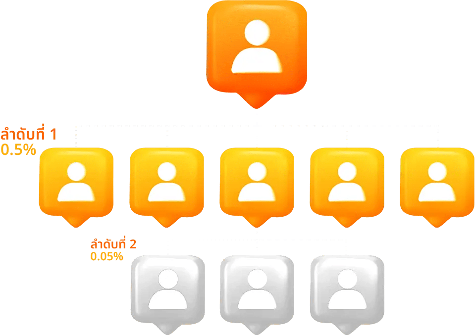 • ท่านจะได้รับส่วนแบ่งเริ่มต้นในดับที่ 2 0.05%