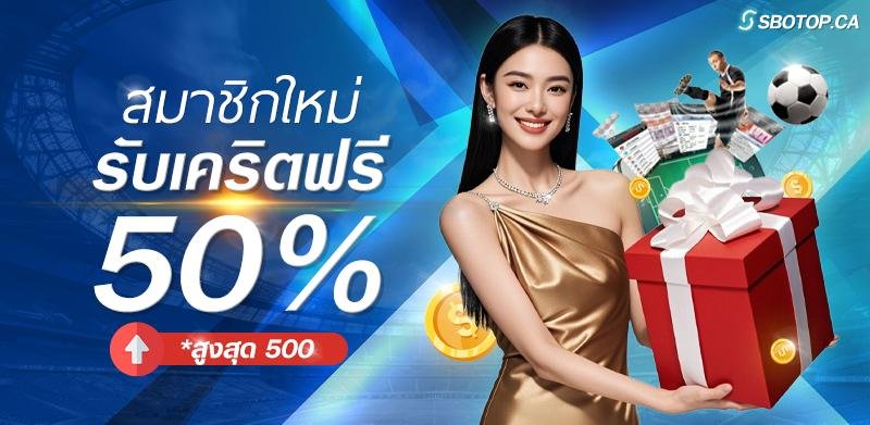 สมาชิกใหม่ SBOTOP จะได้รับเครดิตฟรี 50% จากยอดฝากแรก